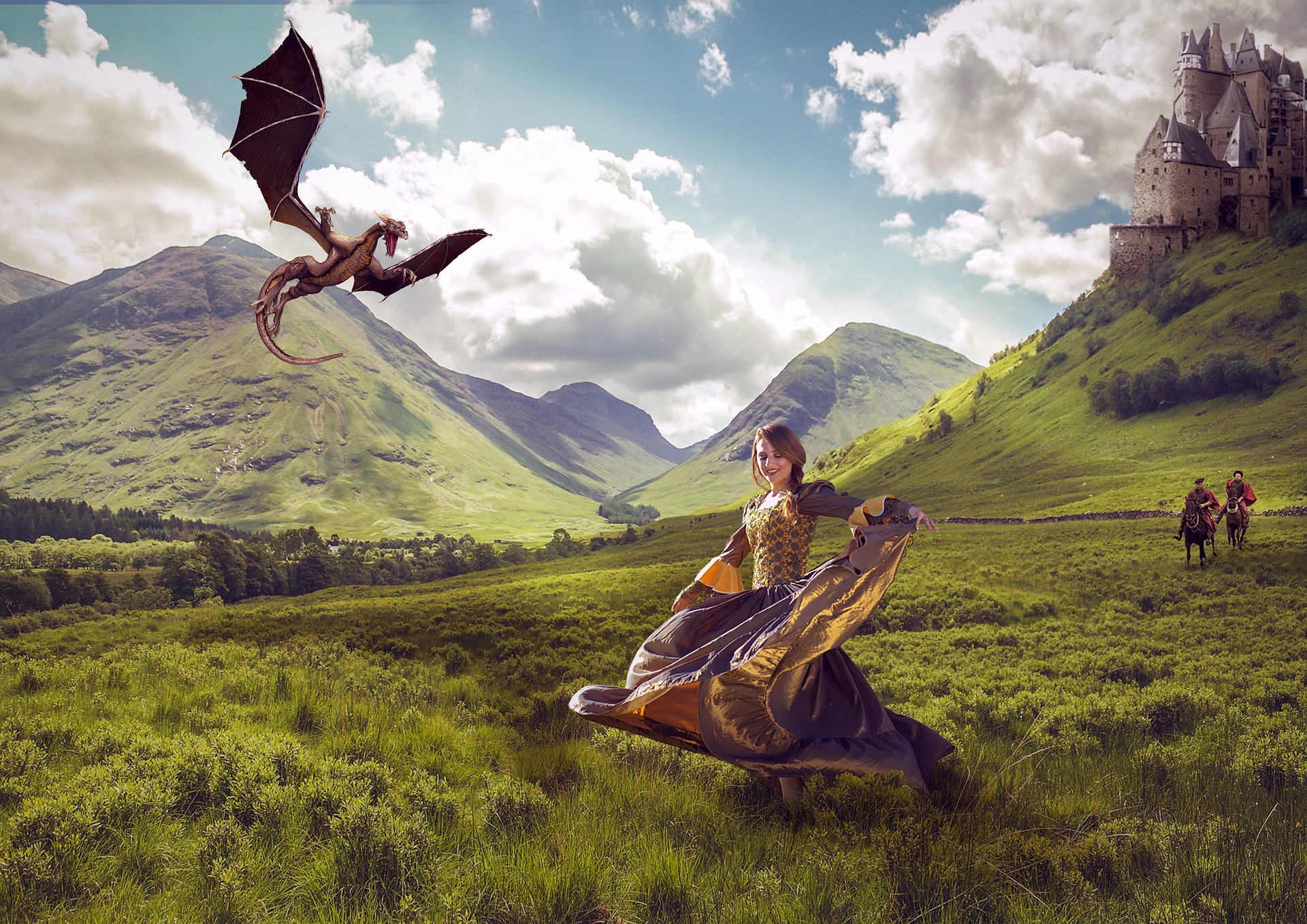 Kaum hatte Durion den mächtigen Zauberspruch gesprochen, verwandelte sich die Prinzessin in einen garstigen Drachen mit triefenden Augen, stinkendem Atem und faltigen Flügeln. Der König und die Königin erkannten ihre Tochter nicht mehr. Sie holten Ritter, Bogenschützen sowie Lanzenträger und vertrieben die Drachenprinzessin aus dem Schloss. Erschrocken und verwirrt flog sie über das Land ihres Vaters hinweg, um sich in einer feuchten Höhle im Gebirge zu verstecken. Dort lebte sie fortan, haderte mit ihrem Schicksal und sehnte sich nach ihrem geliebten Gildon.